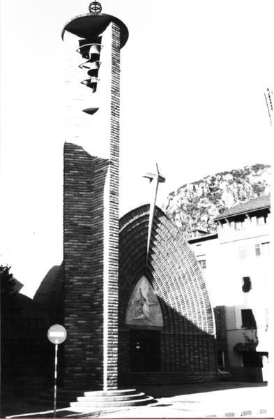 Església d'una nau amb capelles, fornícules, laterals que aprofiten les formes estructurals de la gran closca que amb modulacions curvilínies, separades per juntes d'il·luminació zenitals, produeix un gran espai, amb força espiritualitat màgica. Annexes es troben les closques del Santíssim i del Baptisteri, lligats per les dependències parroquials amb porxada d'accés. El campanar és un element exempt que respon a les arquivoltes de la portada.
